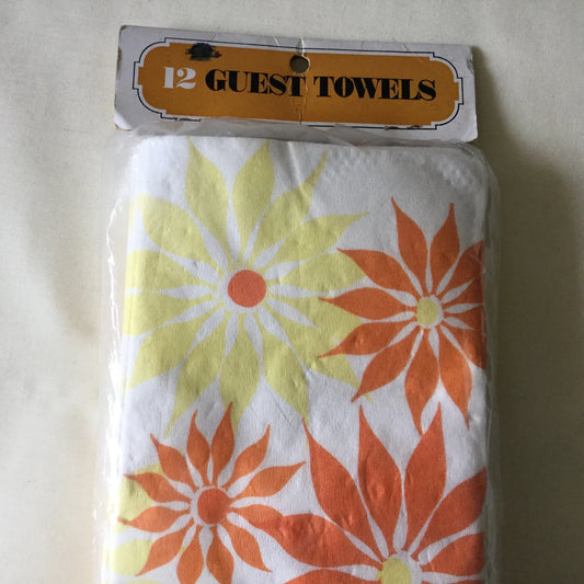 1960's groovy paper guest towels or napkins - 12 thick paper with bright orange and yellow flowers