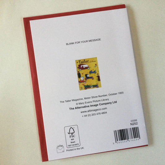 Reproduction Tatler front cover from 1955 blank greeting card, with red envelope