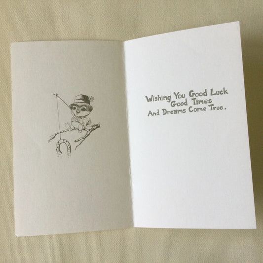 Good Bye and Good Luck vintage greeting card, retirement or farewell, bird fishing, ladybugs for gifts, scrapbooking, collage - no envelope