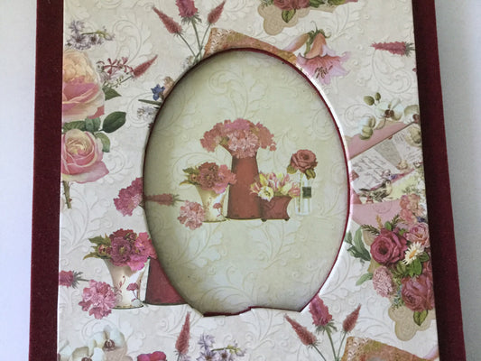 Flower photo frame - flat cardboard and velvet picture frame, pretty pictures, flowers, cottage core, nana, country style