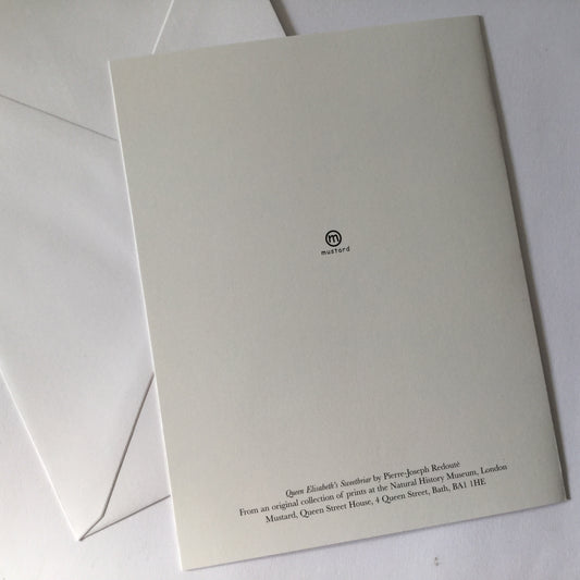 Redoute Rose blank greeting card with envelope, "Queen Elisabeth's Sweetbriar"