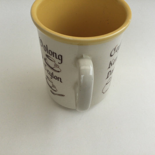 Tea lover ceramic mug in brown, yellow and white, 1970's classic vintage tea cup, great gift