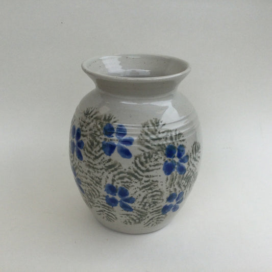 Mogo Pottery vase with blue flowers and green leaves in glaze, unique decorative, dried flower holder, branches, flowers, gift