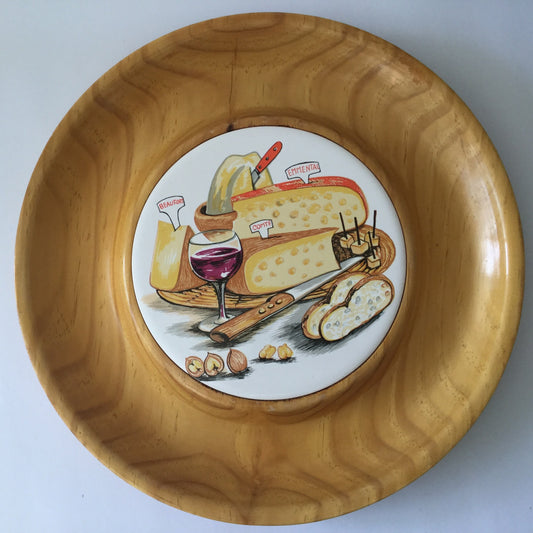 Wood and tile cheese and cracker serving dish - hand turned radiata pine - dinner party, decorative, natural, wood, home decor, serving dish