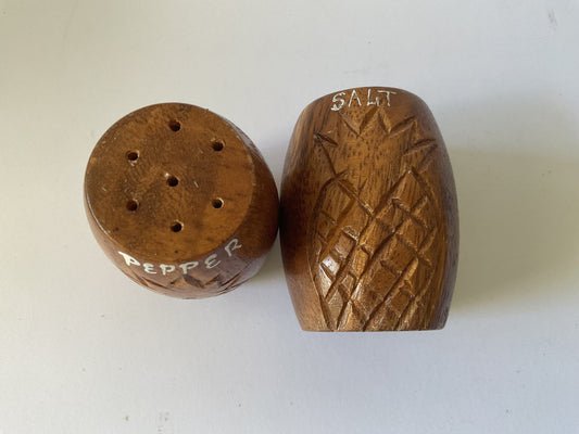 Wooden pineapple design salt and pepper shakers - sixties, scandi style, tiki, tropical, table wear, kitchenalia