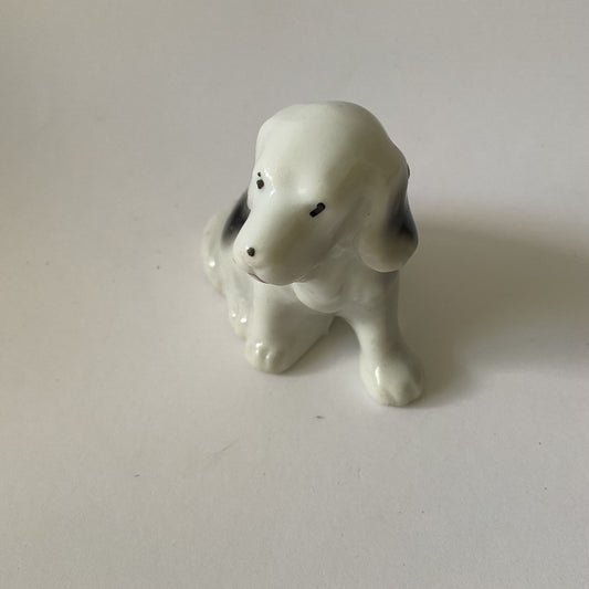 Small black and white dog figurine, cute sixties collectible dog statue, dog lover or breeder gift
