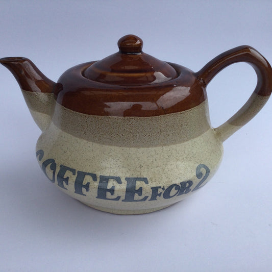 Coffee for two pot and two small coffee cups - cute stoneware set, seventies style, gift