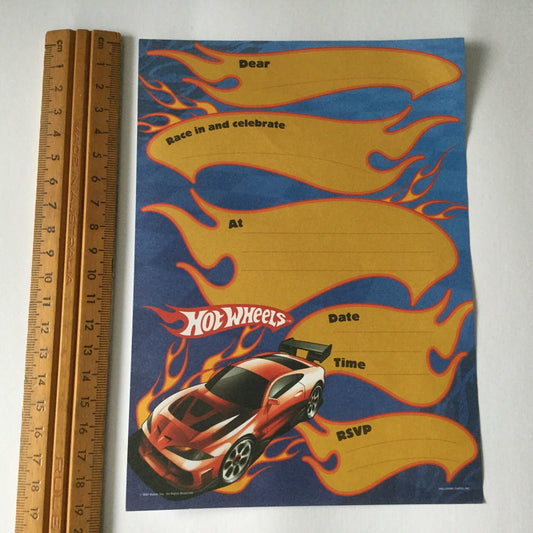 Party Invitations - Hot Wheels - 10 sheets - 1980s retro style paper invites, snail mail, eighties, birthday, celebration