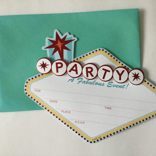 Party Invitations - 8 vintage style party invitations and envelopes - retro Las Vegas style