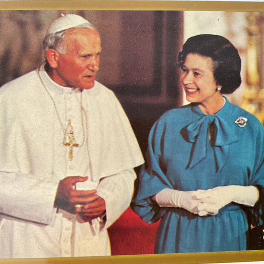 Postcard - Pope John Paul II and Queen Elizabeth II at Buckingham Palace - 1980s souvenir postcard