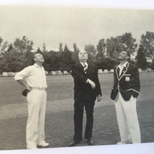 Postcard - Tossing the Coin, 1951 cricket game - black and white photography , unused postcard