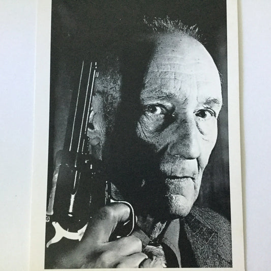 Postcard - William Burroughs, 1990 - black and white photo reproduction - art, photography, writer