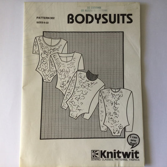 Vintage 80s Knitwit Sewing Pattern 302 Bodysuits - Uncut and complete Sizes 6 - 22 - make it yourself, eighties style