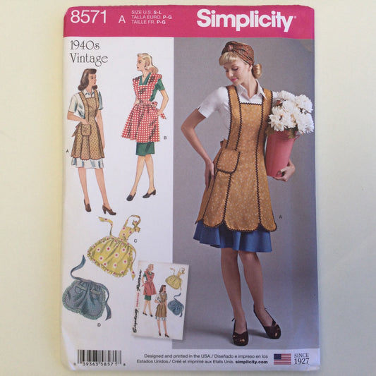1940's vintage style apron pattern Simplicity 8571 - Sizes Sm Med Lrg - Unused, uncut and factory folded pattern forties style sweetheart bib