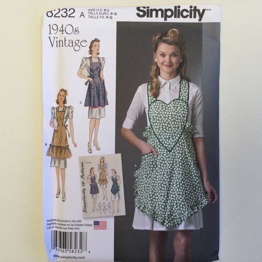 1940's vintage style apron pattern Simplicity 8232 - Sizes Sm Med Lrg - Unused, uncut and factory folded pattern forties style sweetheart bib