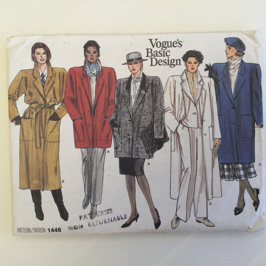 Vintage 80s Vogue Basic Design - Belted trench, long coat - Uncut and complete original sewing pattern