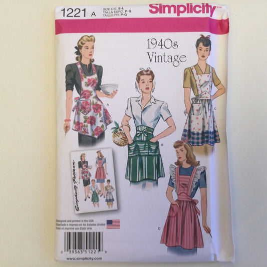 1940's vintage style apron pattern Simplicity 1221 - Sizes Sm Med Lrg - Unused, uncut and factory folded pattern forties style sweetheart bib