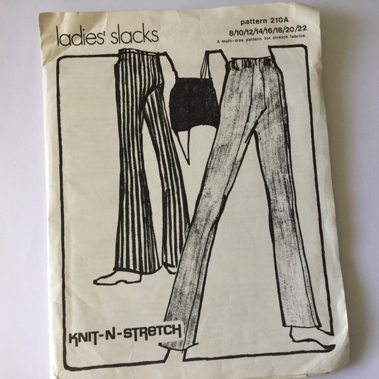 Vintage 70s Knit-N-Stretch Sewing Pattern Ladies Slacks 210A sizes 8 to 22 - Uncut and complete Sizes 8 - 18