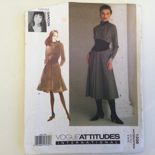 Vintage 90s Vogue Attitudes - Nathalie Garcon Designer - Misses’ dress, shoulder pads Uncut and complete original sewing pattern