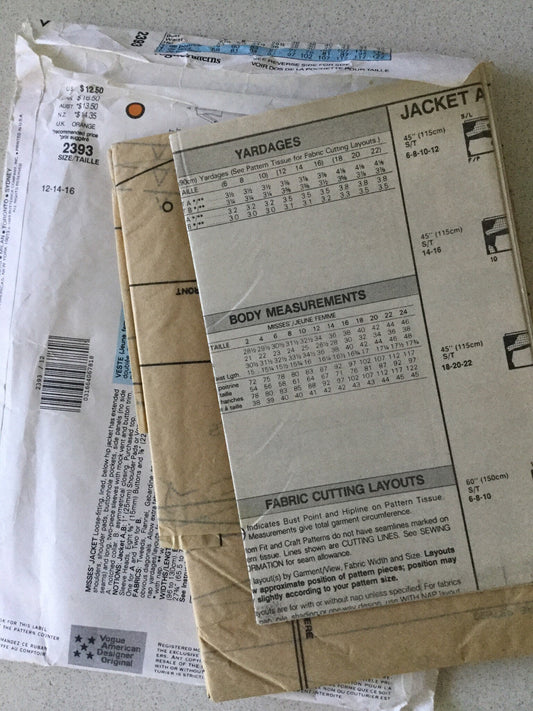 Vintage 80s Vogue American Designer 2393 - Bill Blass - Misses’ Jacket Uncut and complete original sewing pattern