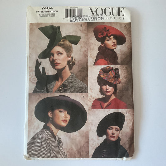 Vogue sewing pattern 2001 Vintage style hats from 30s and 40s Uncut and complete one size