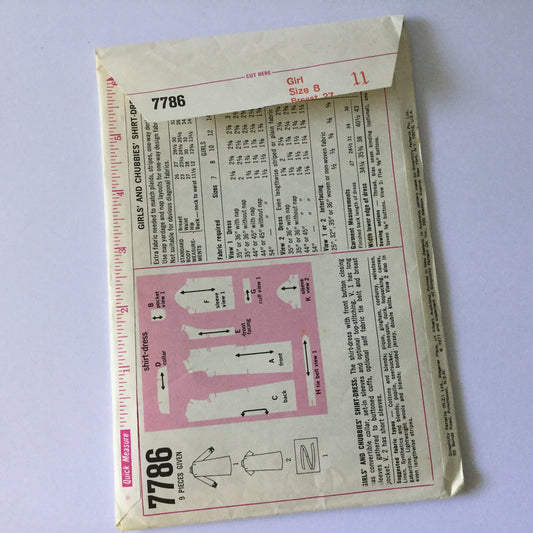 Girls shirt dress size 8 and half sizes - 1970's vintage sewing pattern - Simplicity 7786 - unused and complete