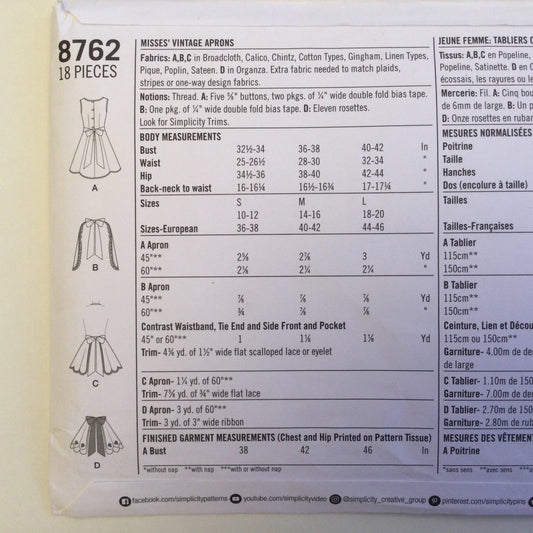 1950's vintage style apron pattern Simplicity 8762 - Sizes Sm Med Lrg - Unused, uncut and factory folded pattern fifties style mcm